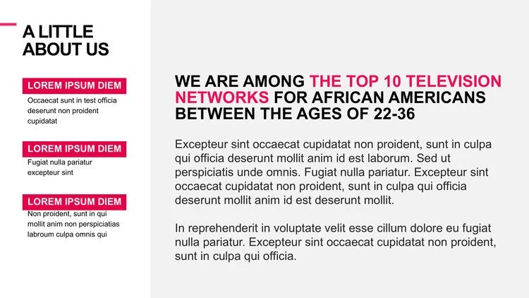 TheGrio Awards   Focus   Snapchat Discover Pitch   Makeup By Shirin   Sales Deck   Shiggy Made Me Do It   BET Awards   Rate The Bars   Monif C.   Shift Studios   Punch Lines   Generation Next   Rebel Yell   Storytime   Flexmode